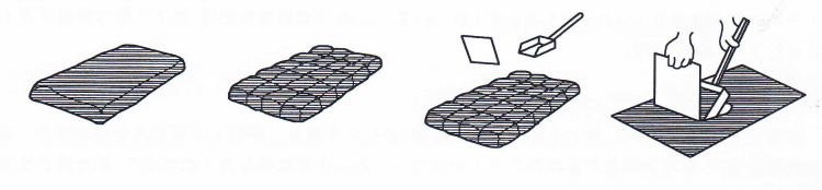 4.2.4棋盤法:適用于鋸屑和其他能用鏟勺處理的小顆粒樣品。將全部樣品置于清潔并堅(jiān)硬的表面上并用鏟勺混勻。用鏟勺將樣品散布成長(zhǎng)方形堆,堆的厚度不超過物料標(biāo)稱最大粒度的3倍,用鏟勺在長(zhǎng)方形堆的表面上輕輕劃線,分割出不少于20個(gè)部分。用鏟勺和擋板從20個(gè)部分中的每一部分取子樣,每次取樣鏟勺都插入到堆的底部。結(jié)合子樣到所需量的試樣。